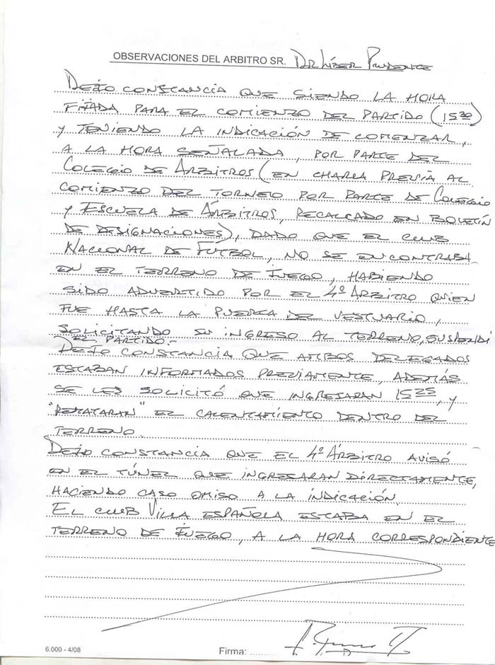 13a0 Informe confidencial del árbitro Líber Prudente luego del partido suspendido entre Nacional y Villa Española Imprimir A- A A+ Acceder al documento
