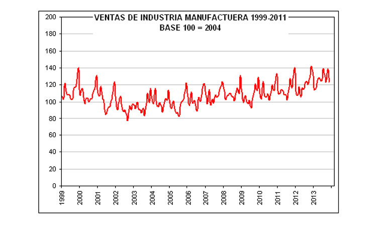 En consecuencia, el "Indice de Volumen Físico de las Ventas industriales"; (IVFV) registró estabilidad en noviembre de 2013, con una leve suba de 0,2%, siempre en comparación con igual mes del año anterior (no incluye la refinería de ANCAP).