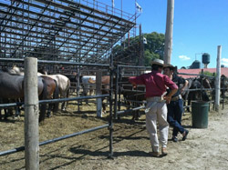 Yo dije que la actividad ahora temprano era fundamentalmente alrededor de los caballos y todo el personal que acompaña las tropillas y que además se está preparando para dar el espectáculo de las jineteadas. Personal que viene de lejos, familias completas que llegan de distintos departamentos, se instalan aquí y viven esta semana entera alojados en lo que son las caballerizas cuando la Exposición Rural.