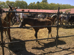En ese sentido estoy aquí compartiendo una rueda de mate con gente que viene de Castillo. El señor trae una tropilla que se llama Sin Querencia, del establecimiento El Relincho. Se me fugaron los tres domadores, se ve que se asustaron y se fueron; según parece ya tuvieron su performance ayer, con distinta suerte.