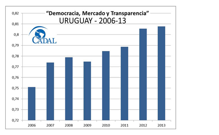 El reporte anual del Centro para la Apertura y el Desarrollo de América Latina (CADAL) indicó que "aunque desciende dos lugares respecto a 2012, superado por países como Japón y Estonia, Uruguay se ubica en un lugar destacado del ranking y, lo que es más importante, alcanzando su más alta puntuación";, desde que se publica este estudio.